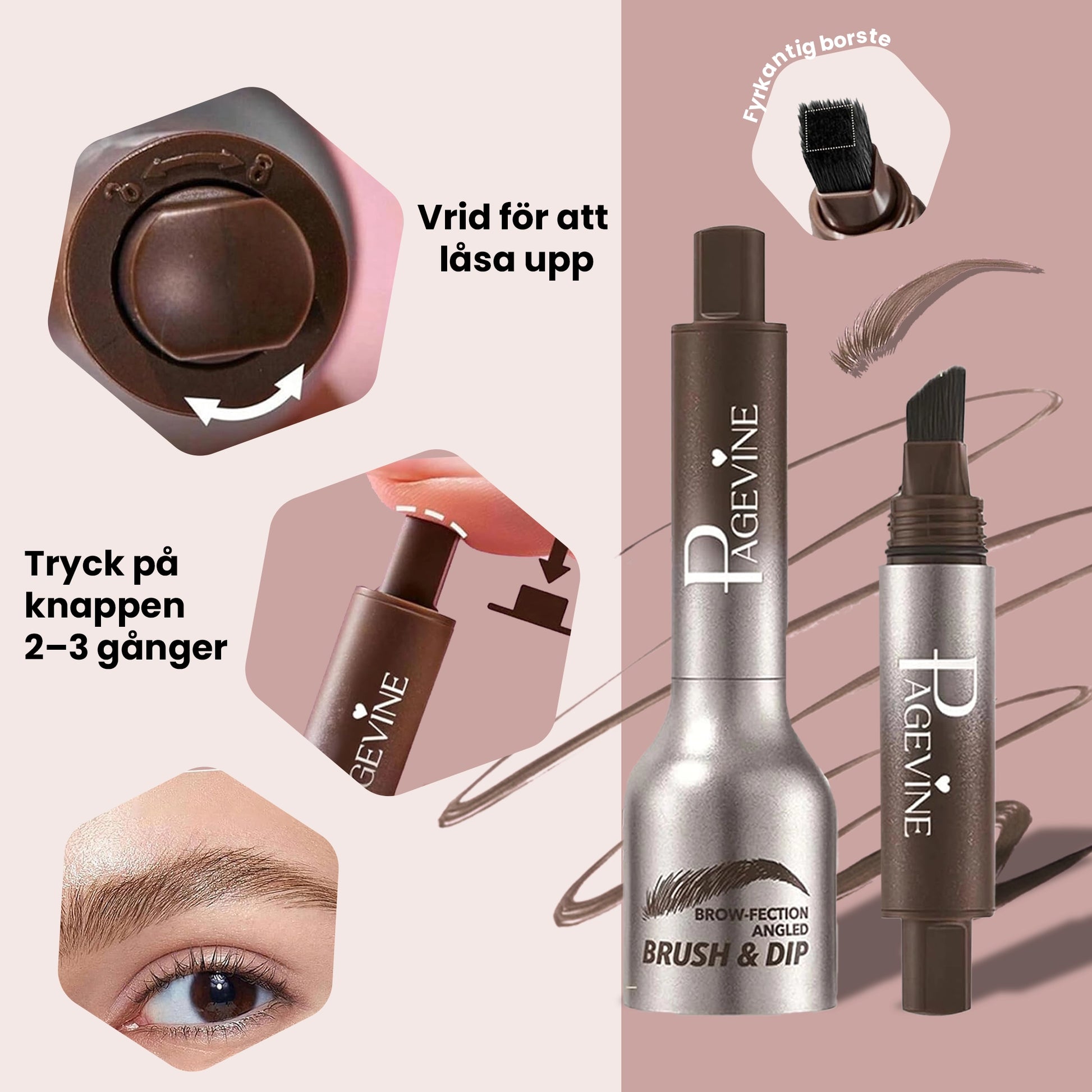 Ögonbrynspennan är avsedd för användning på naturliga ögonbryn. Den passar olika brynformer och täthet och är avsedd för utvärtes kosmetisk användning.